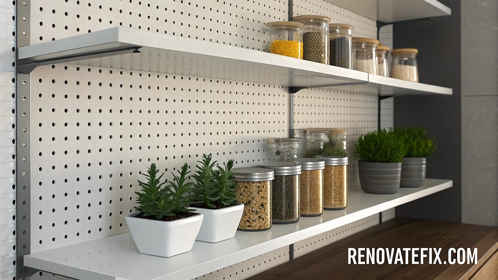 These modern pieces allow glimpses of wall colors through tiny holes while supporting various kitchen items securely.