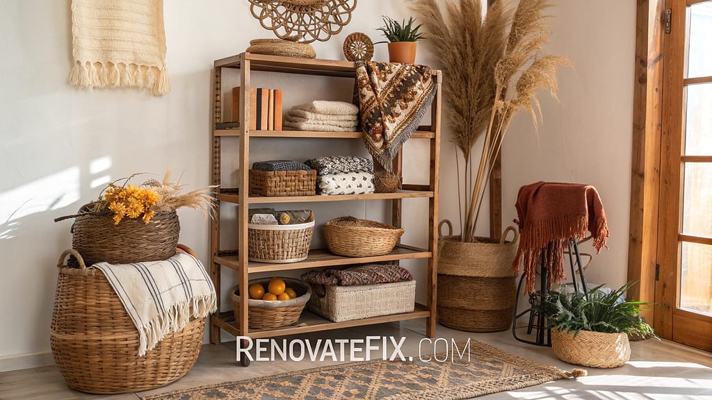 These natural fiber containers add texture while providing concealed storage options for kitchen essentials.