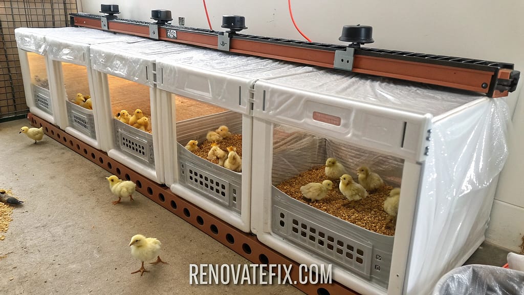 This configuration works exceptionally well for smaller breeds or limited quantities of chicks where massive setups would be impractical.