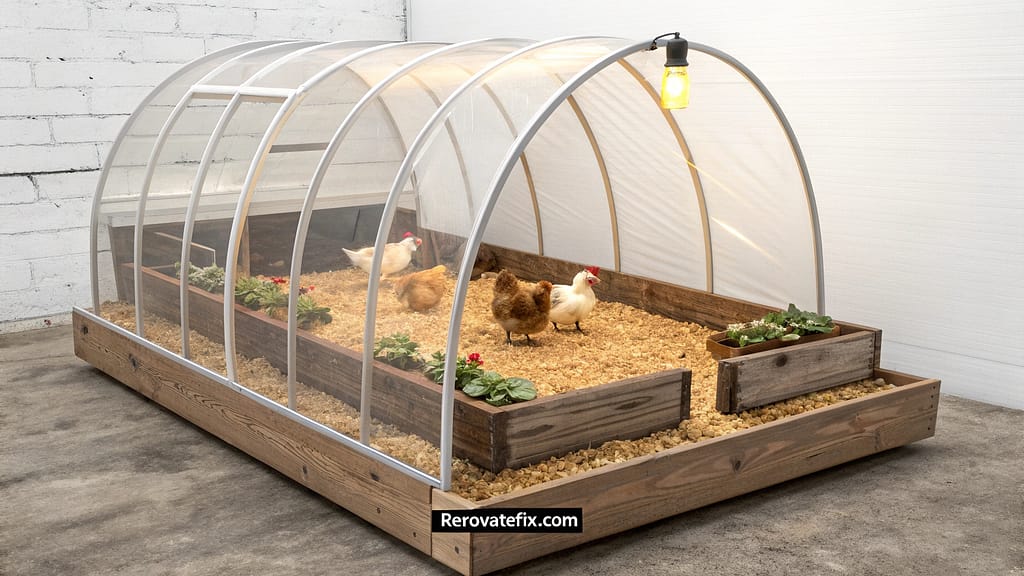 Placing small portable brooders inside greenhouses creates naturally humid environments with abundant natural light, encouraging healthy vitamin D production while reducing artificial heating costs significantly during daylight hours.