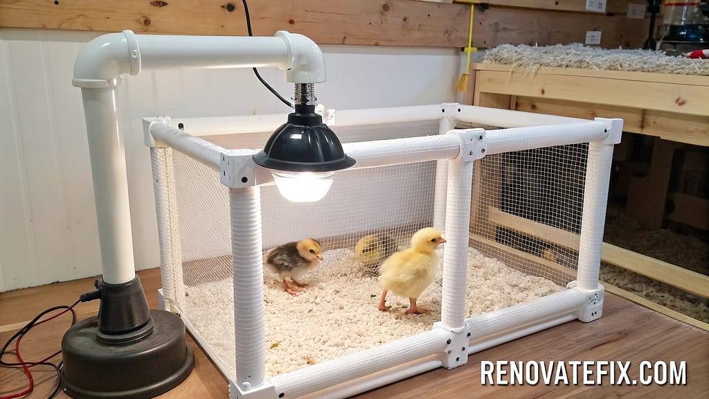 Constructing a custom PVC pipe framework creates an adaptable foundation that supports heat lamps at adjustable heights while accommodating growing chicks through various development stages without requiring complete rebuilding.