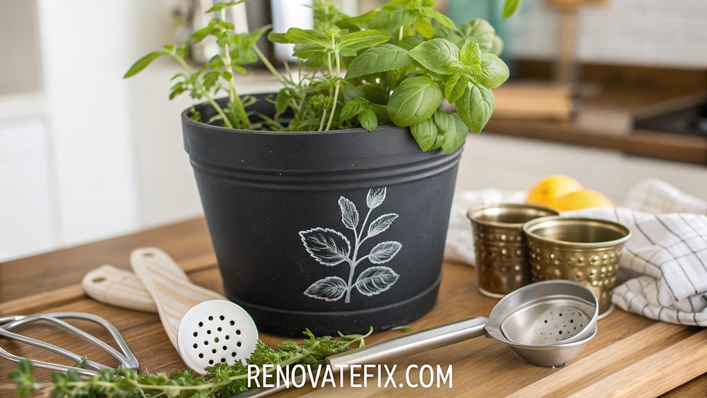 Transform plant containers into functional art pieces with chalkboard paint.