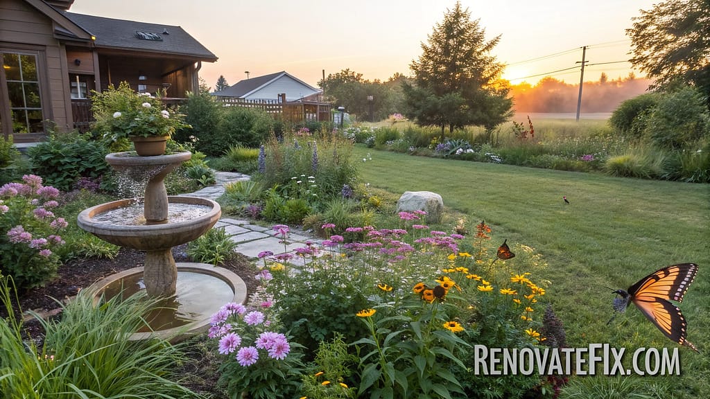 Add tranquility to your outdoor sanctuary with a bubbling fountain, reflective pond, or gentle stream that attracts birds and beneficial insects while creating a peaceful auditory backdrop.