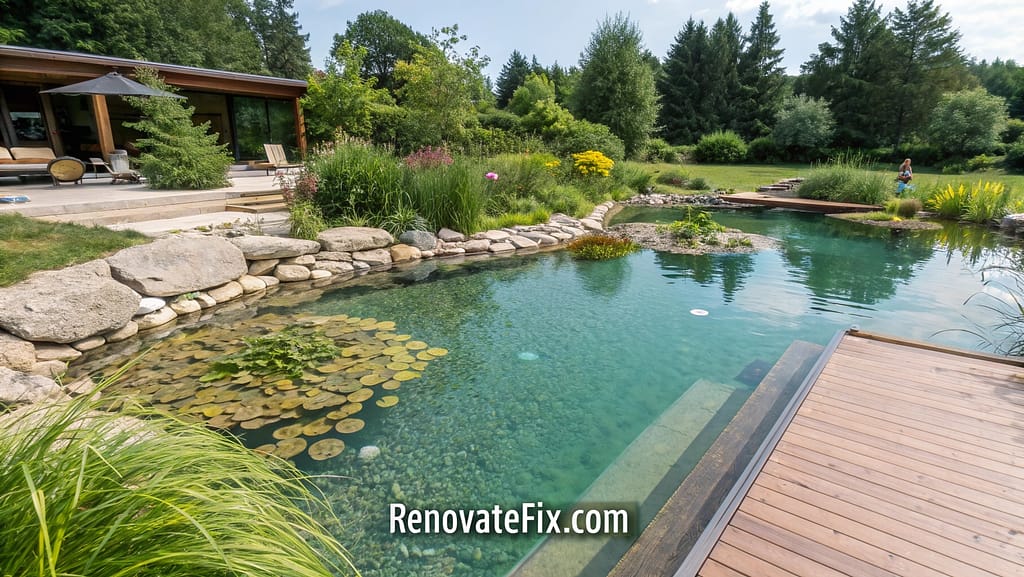 Replace traditional chlorinated swimming pools with naturally filtered water features that use aquatic plants and beneficial microorganisms to maintain water clarity while creating harmonious ecosystems that blend seamlessly with surrounding garden areas.