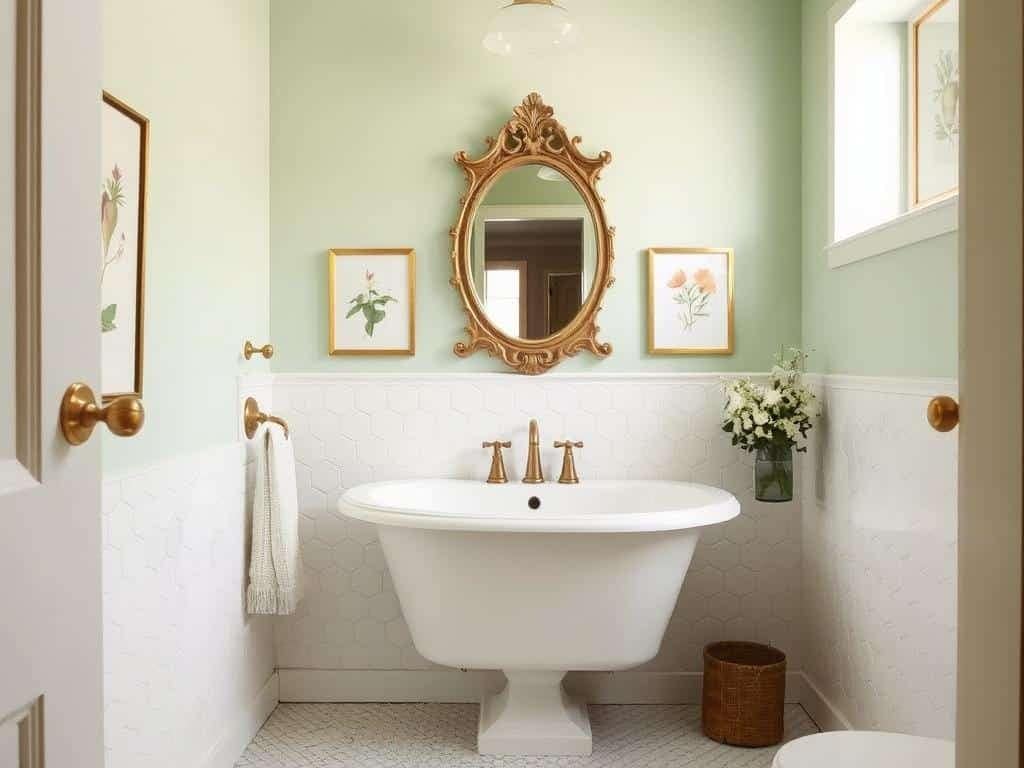 Mint walls provide a perfect backdrop for both chrome and brass fixtures.