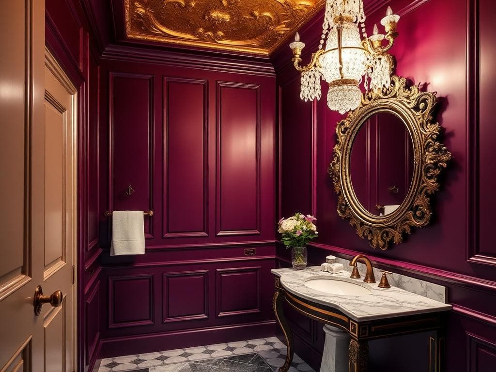 This rich wine-colored hue adds drama and sophistication to the bathroom space.