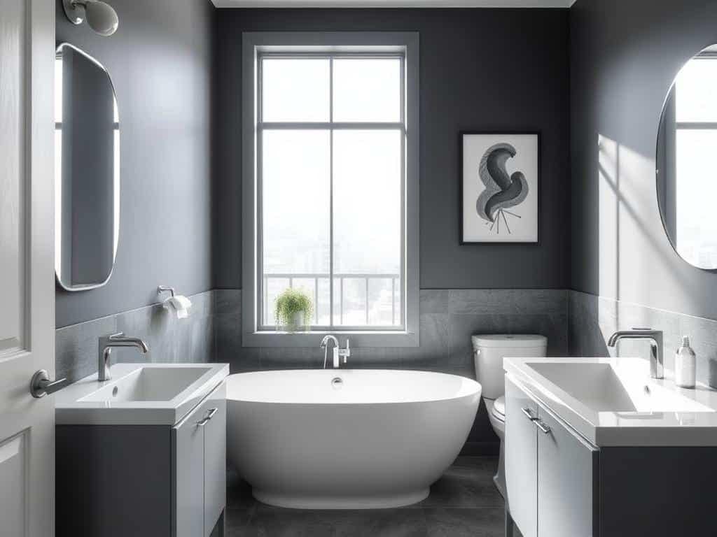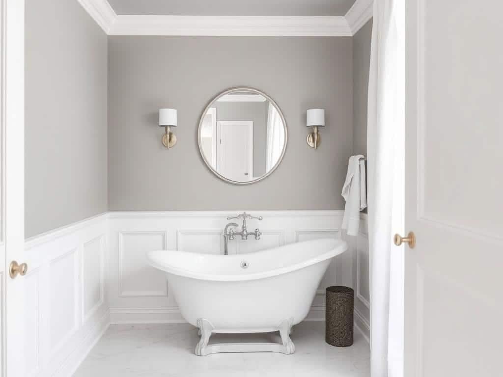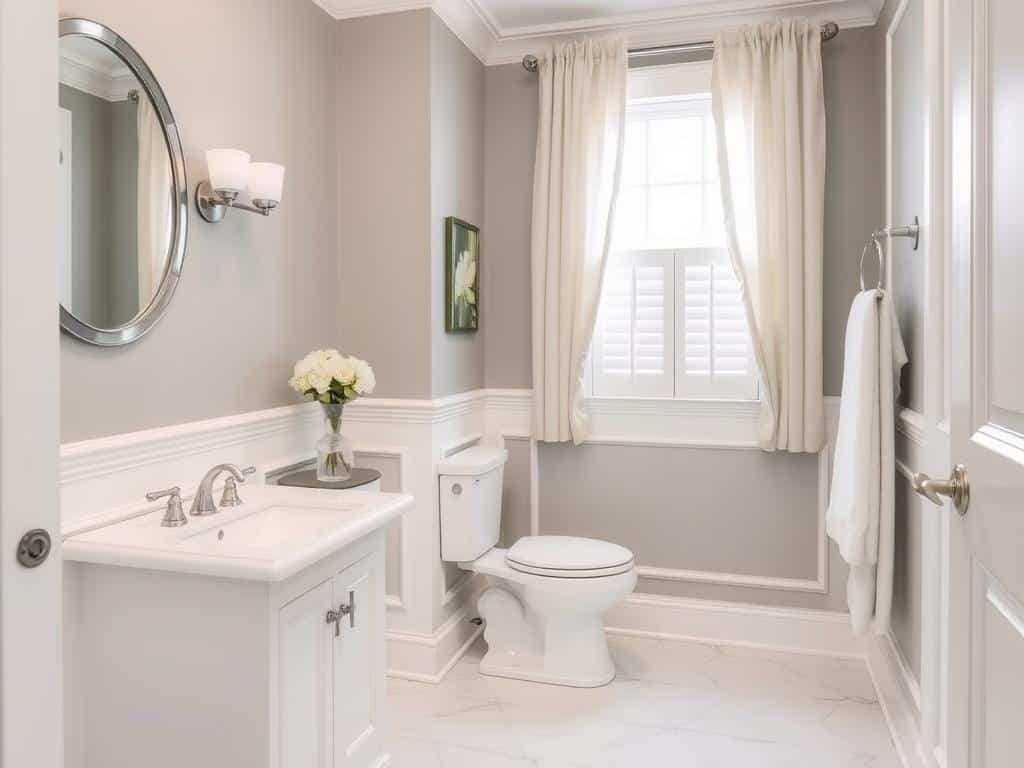 Greige serves as an excellent backdrop for both bold and subtle bathroom wall decor ideas.