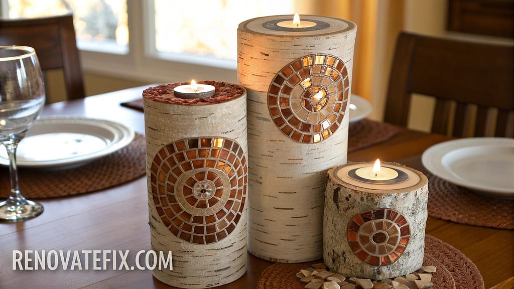 Finished mosaics resemble expensive commissioned artwork while costing only basic concrete mix and collection effort.