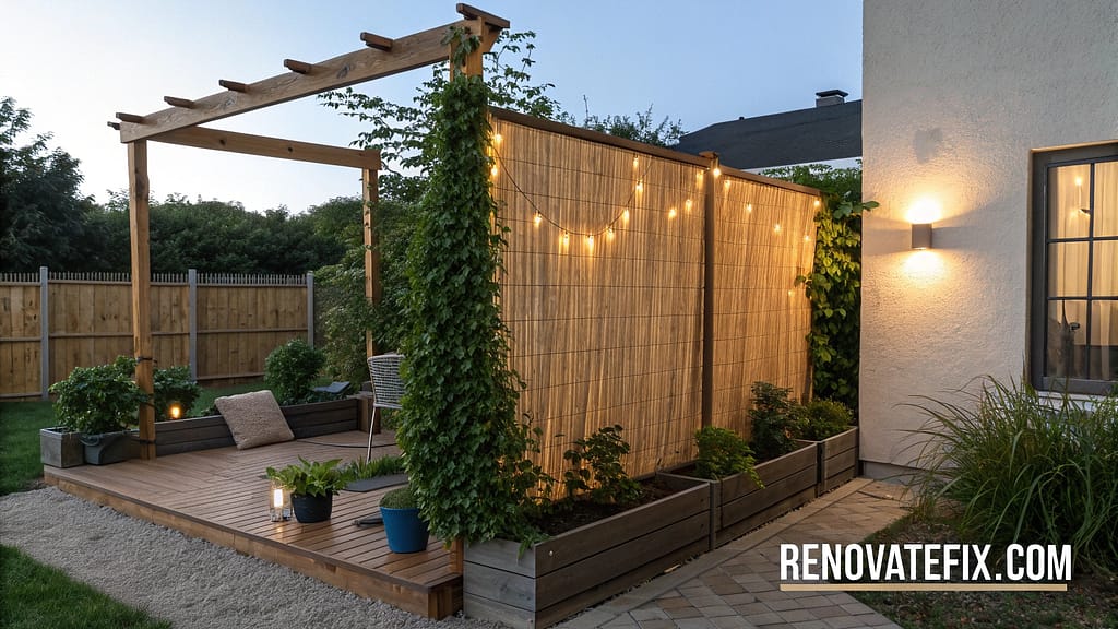 Create affordable barriers between properties or separate yard zones using bamboo rolls attached to simple wooden frames. Anchor frames securely using concrete footings or attach to existing structures.