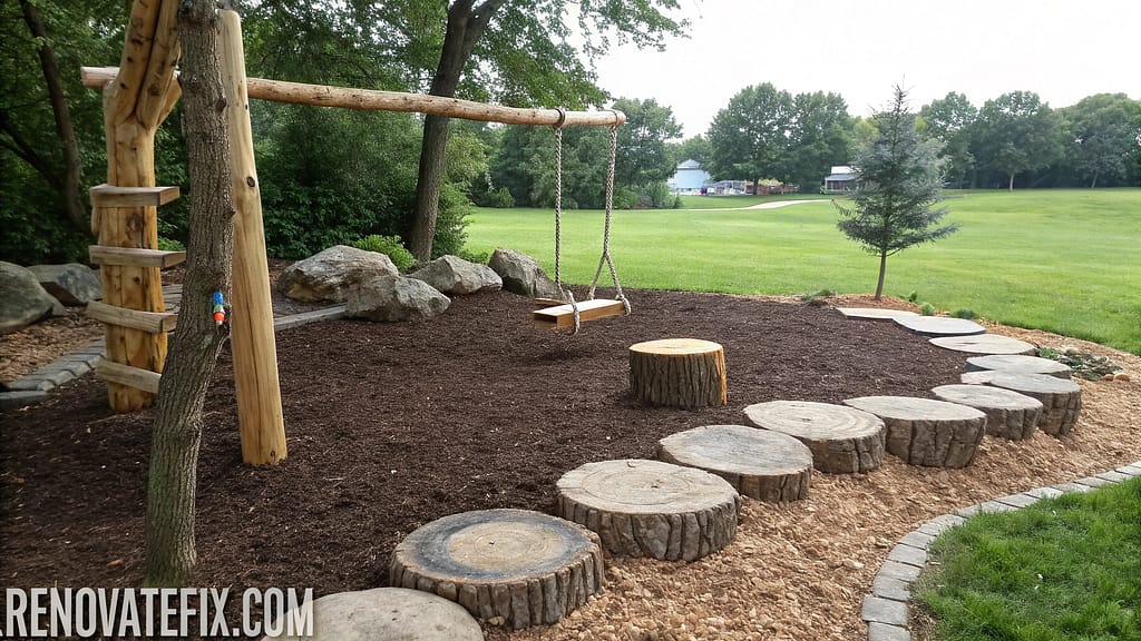 This natural play environment stimulates creativity while avoiding costly commercial playground equipment.