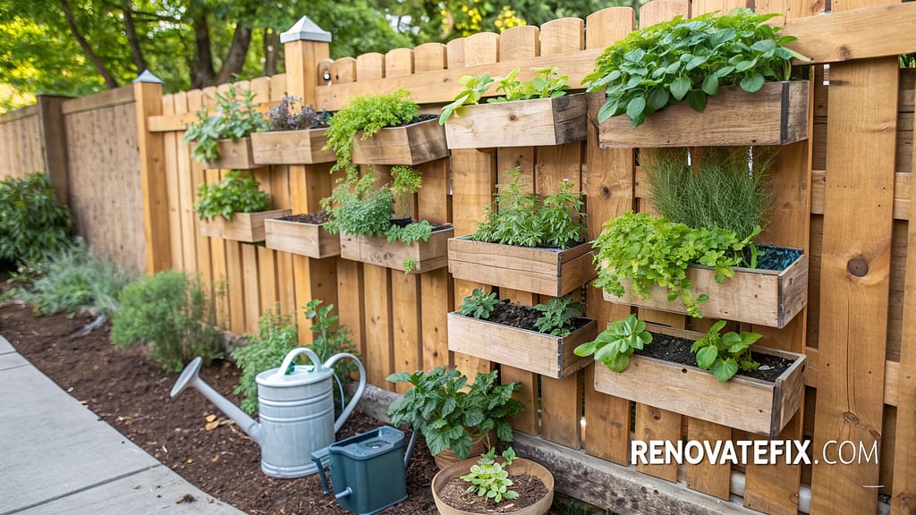 Repurpose wooden pallets, old dresser drawers, or rain gutters into vertical planters attached securely to fences or walls.