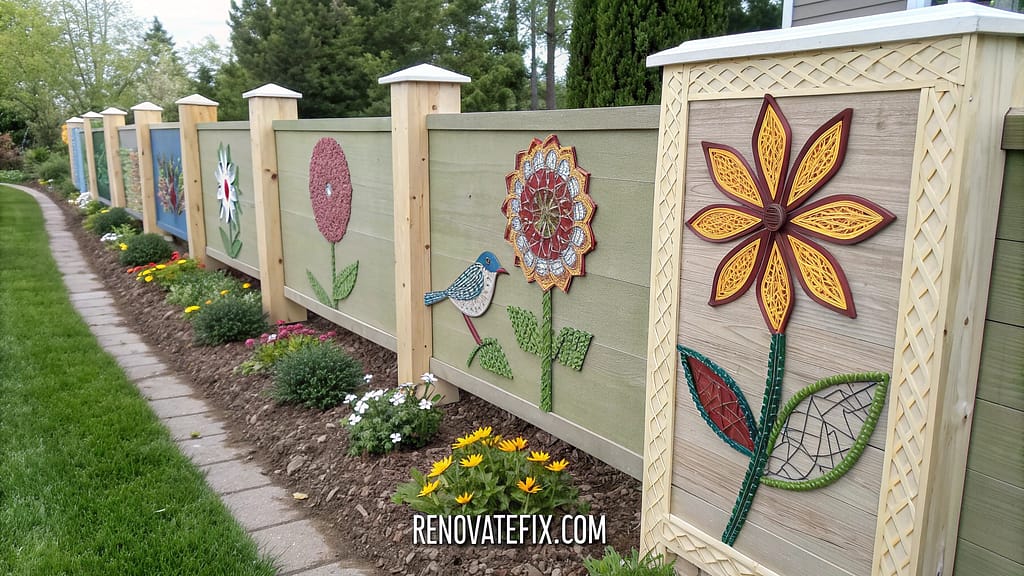 Create multiple panels in complementary designs, weather-proof with clear exterior sealer, and mount on fences or posts throughout yard.