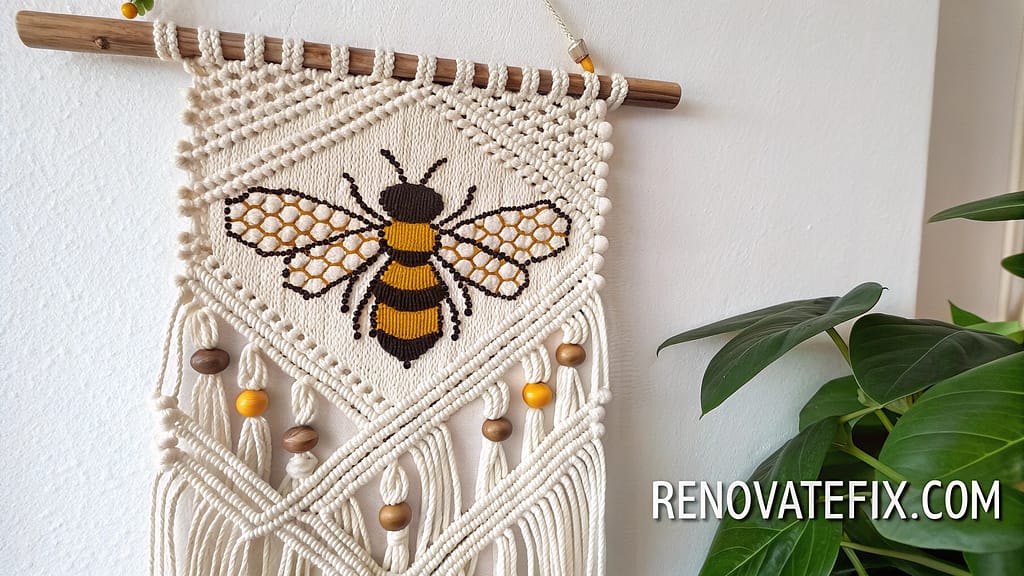 15. Macramé Bee Wall Hanging