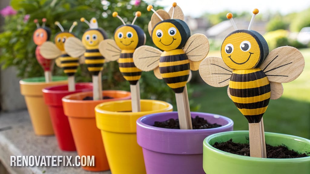 finish with clear sealer for outdoor durability. Planted with bee-friendly flowers or herbs, these functional art pieces attract real pollinators while bringing whimsy to garden spaces.
