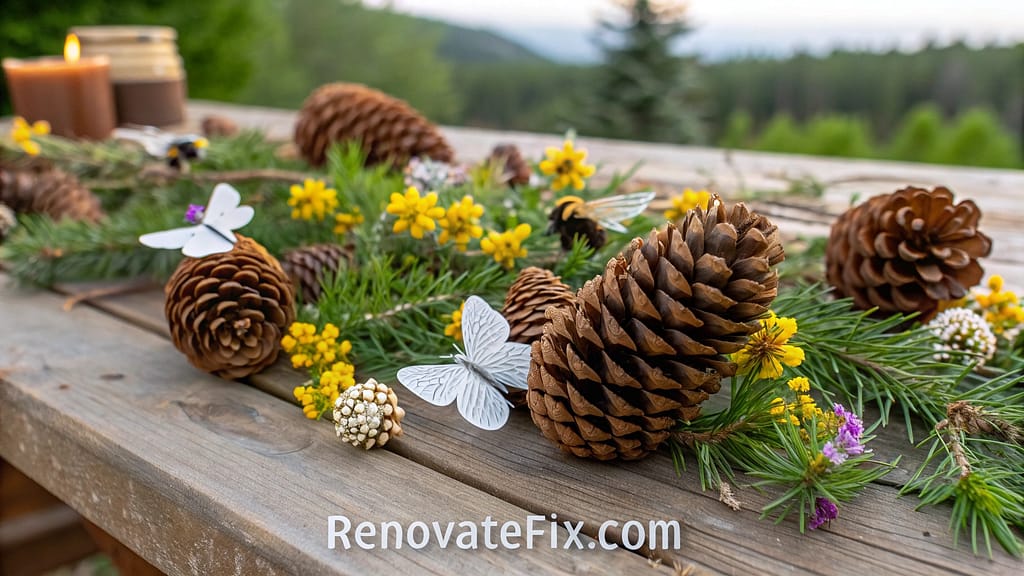 Hung from branches or arranged in bowls, these natural material bees bring woodland charm to seasonal displays without requiring expensive supplies.