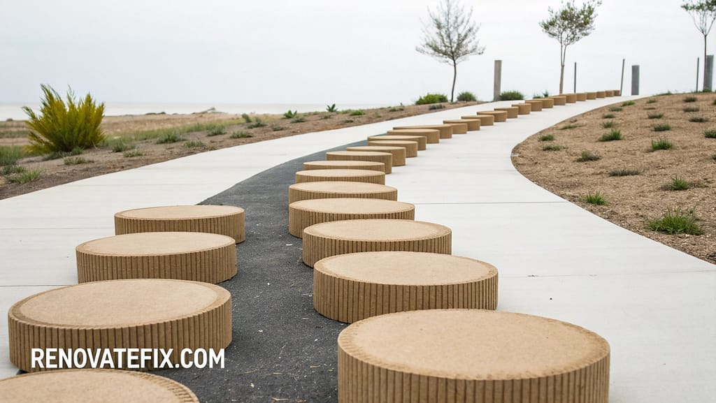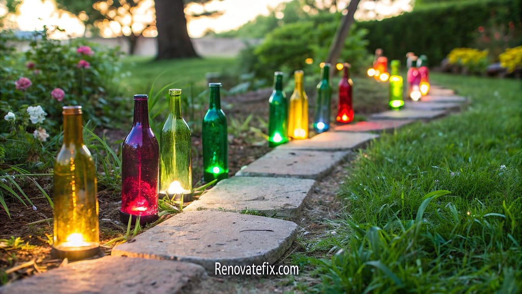 This quirky approach transforms trash into a conversation-starting walkway with minimal investment.
