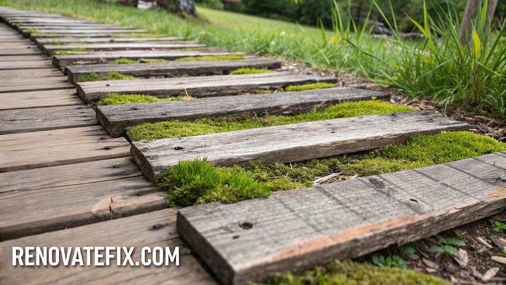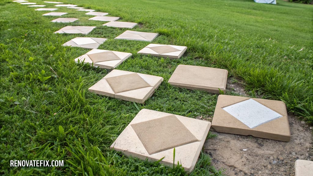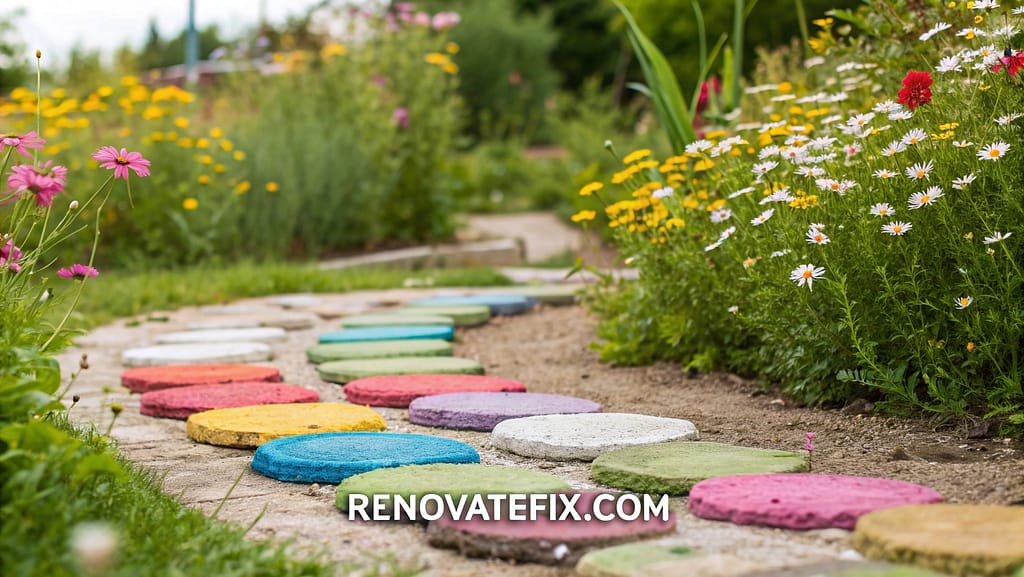 Create an artistic, budget-friendly walkway solution using readily available materials.