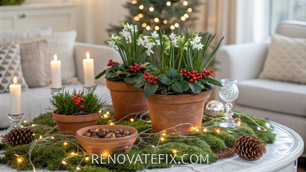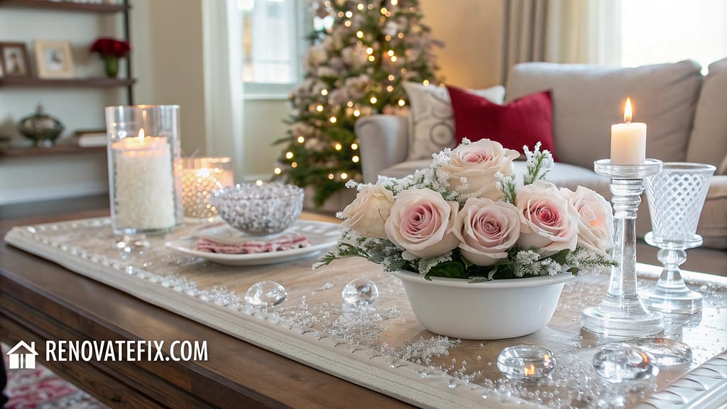 From glass table arrangements to living room centerpieces, these ideas help craft perfect holiday ambiance.