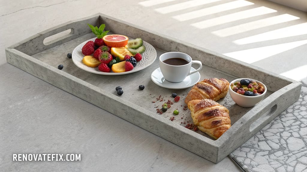 Reinforced concrete platforms with integrated handles offer sturdy serving solutions.