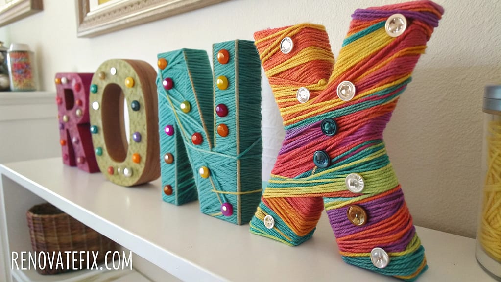 Yarn wrapped letters make beautiful bedroom decorations while teaching wrapping techniques and color patterns.