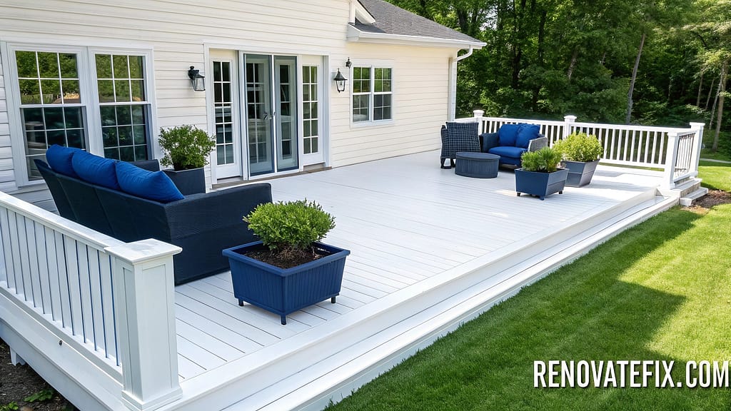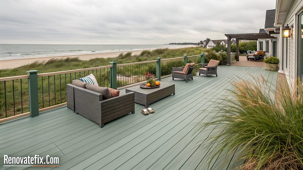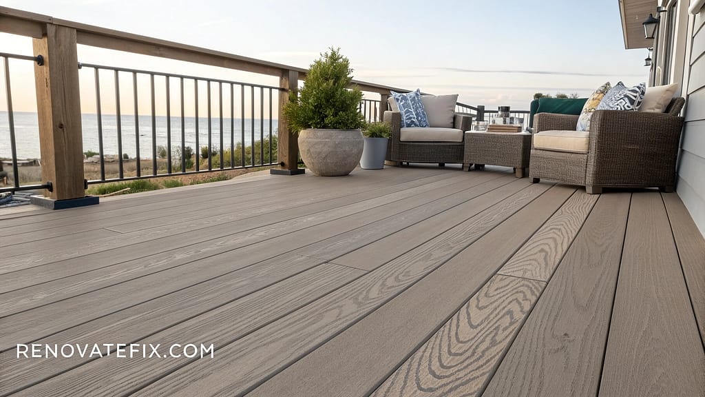 A light, cool-toned gray with subtle blue undertones that creates an airy, open feeling even in smaller deck spaces.