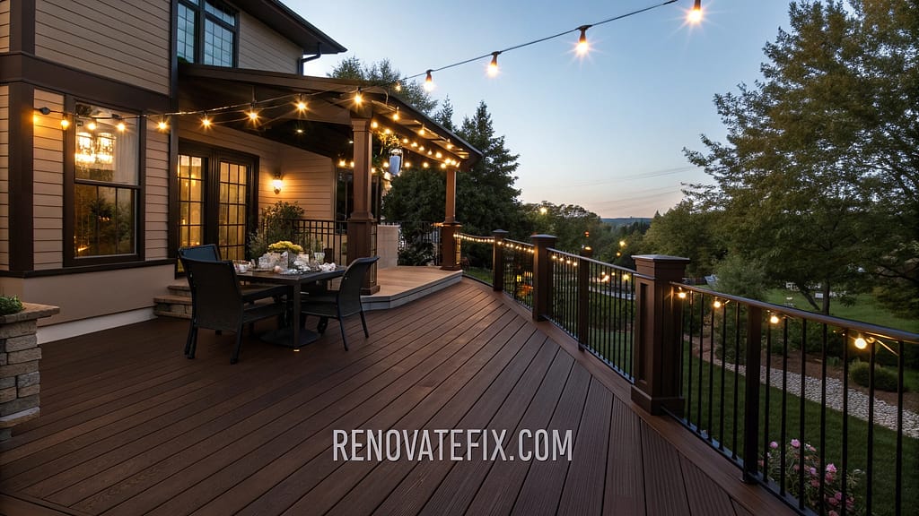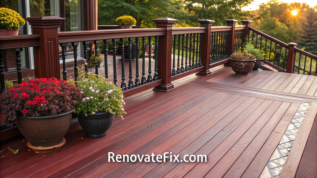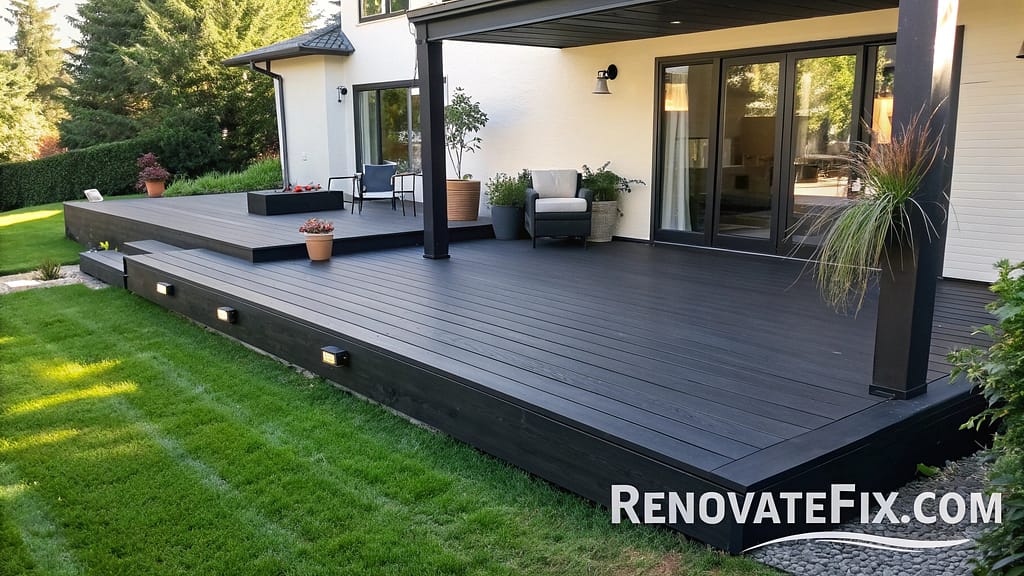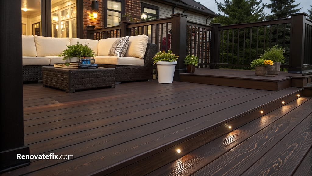 The rich, dark tones conceal dirt and wear patterns effectively, making it practical for high-traffic deck areas in family homes.