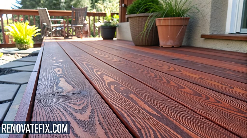 Burnt umber stains provide excellent coverage while allowing enough texture to maintain the authentic wood feel that makes decks appealing.