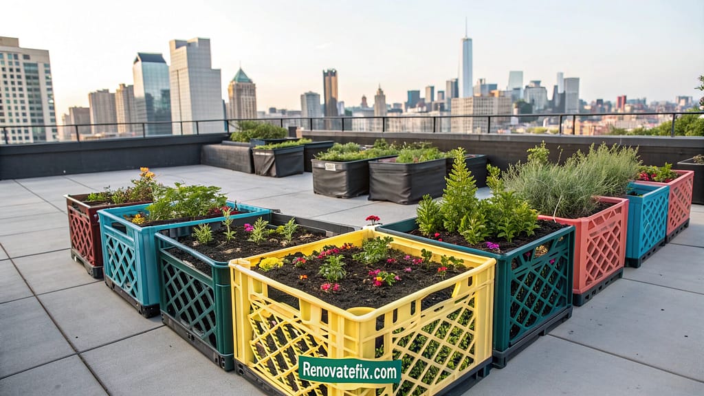 Connect plastic dairy crates into customizable configurations, creating lightweight modular growing systems easily reconfigured as garden needs evolve throughout seasons.