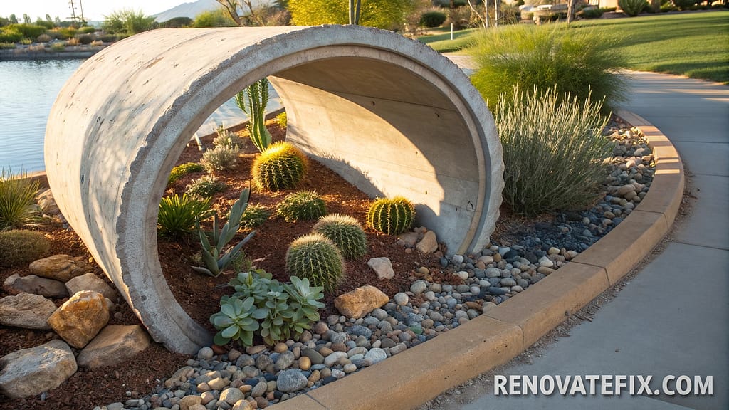 Slice large-diameter PVC or concrete drainage pipes horizontally, creating circular growing arenas with excellent moisture retention properties ideal for drought-tolerant plant collections.