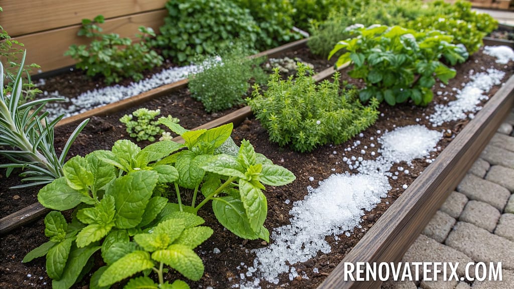 Apply diluted Epsom salt solution (one tablespoon per gallon) monthly around herb plants during growing season.