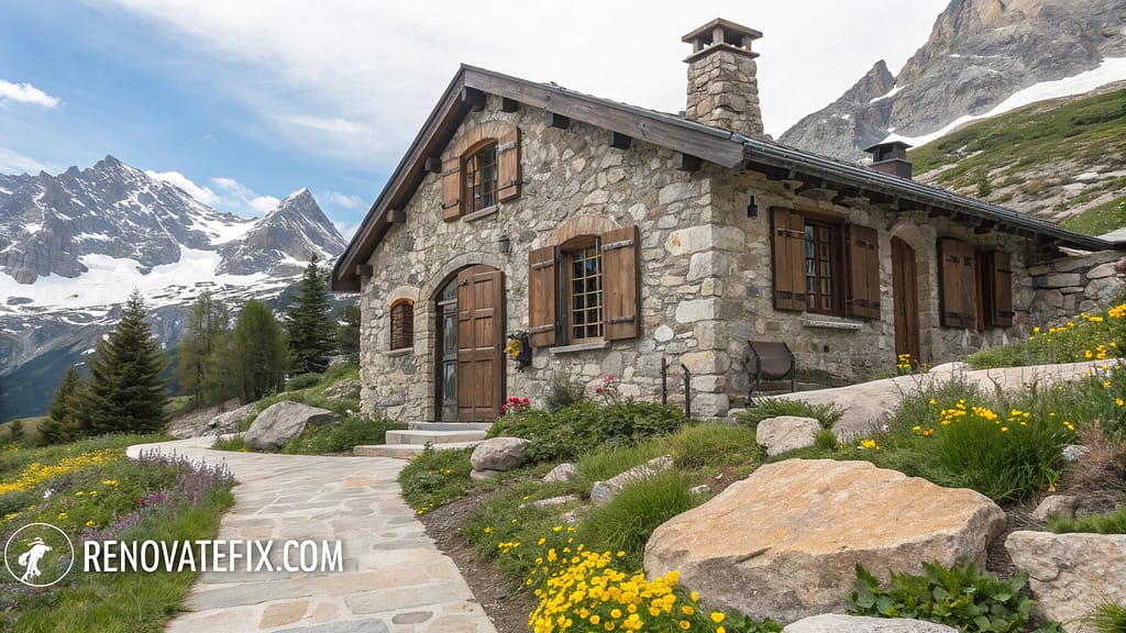 Granite walls rise majestically against alpine backdrops, providing sturdy shelter during snow-laden winters while capturing warmth from summer sunshine that penetrates deep-set windows framed by hand-carved lintels depicting native flora and fauna.