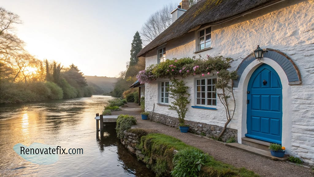 Riverside cottages embrace azure waters with sturdy stone foundations that withstand seasonal floods while providing cozy comfort through rounded doorways and bay windows perfectly positioned for watching wildlife along shorelines.