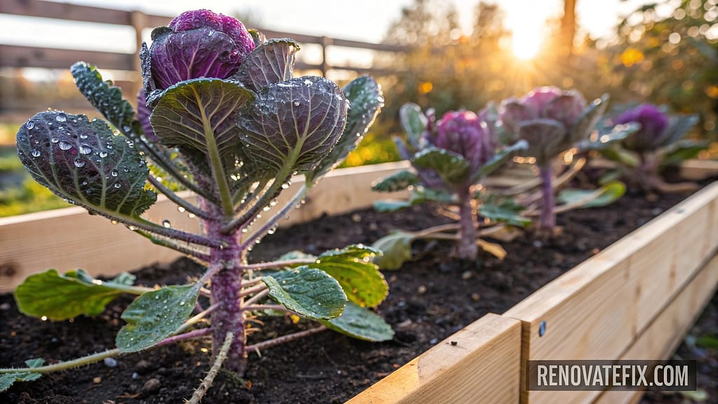 Rich in antioxidants and visually striking, purple brussels sprouts add dramatic flair to raised beds.