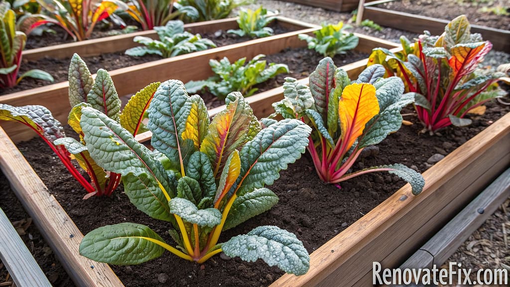 These hardy greens maintain productivity as temperatures drop, offering continuous harvests throughout fall months.