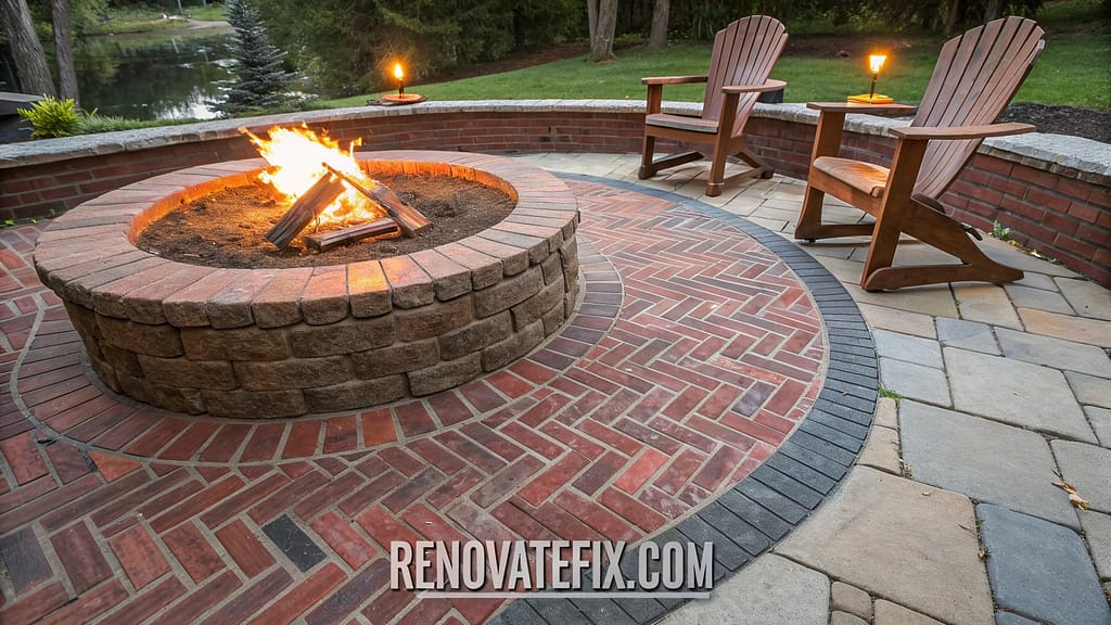 The herringbone arrangement creates visual interest while providing excellent structural stability for containing fires.