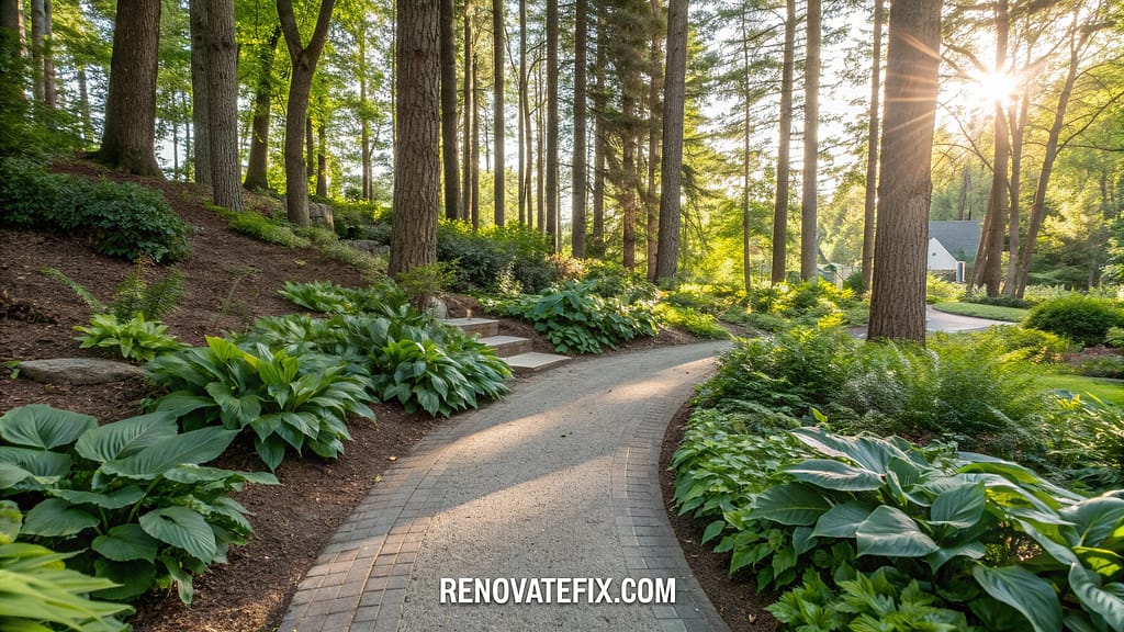 Lining garden paths with strategically positioned hostas creates an organic, flowing border that guides visitors through shaded areas.