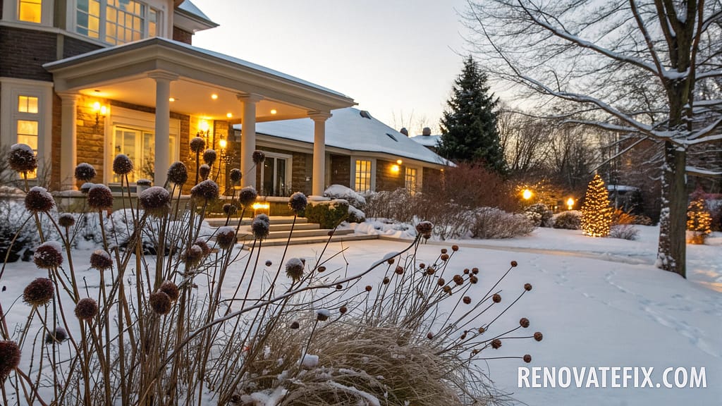 Position plants where low winter sunlight highlights dried elements against snow backgrounds.