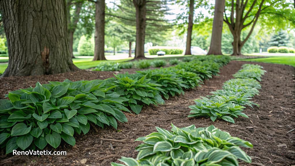 Small hosta varieties function effectively as living mulch beneath trees or shrubs where grass struggles.