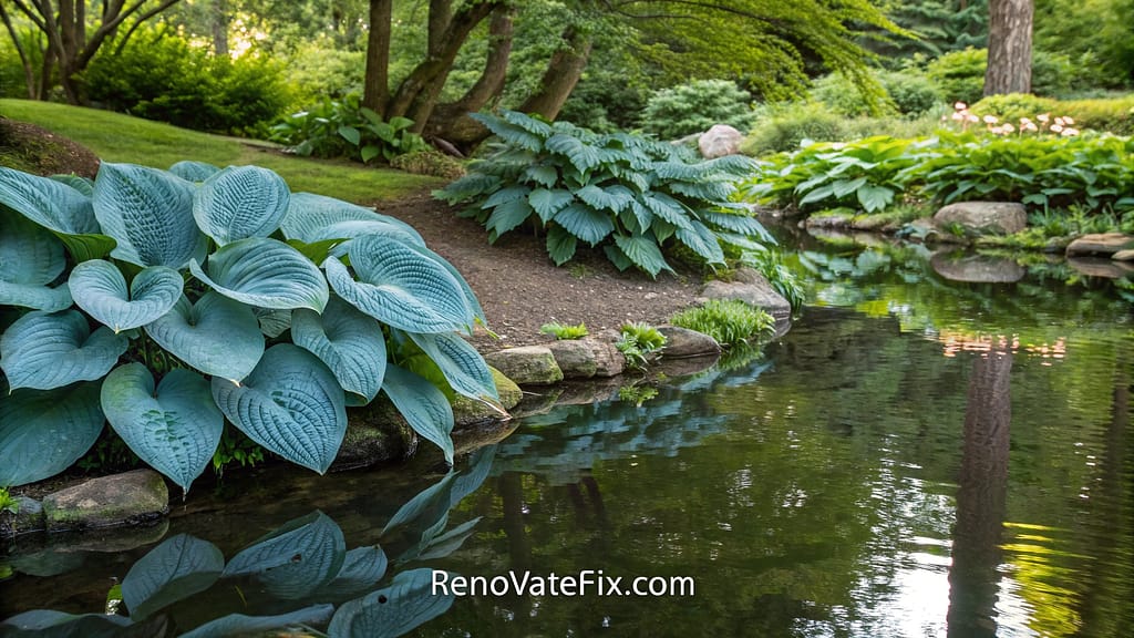 Frame ponds, streams or water features with moisture-loving hosta varieties that thrive in humid microclimates.