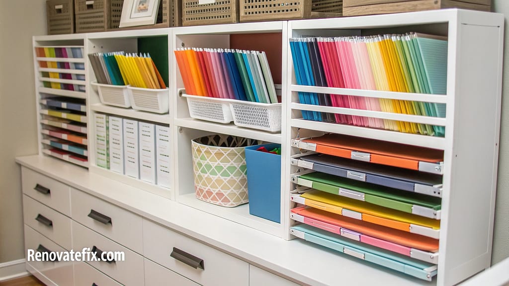This budget-friendly solution provides designated spaces for different paper sizes and types while maintaining easy access to frequently used materials.