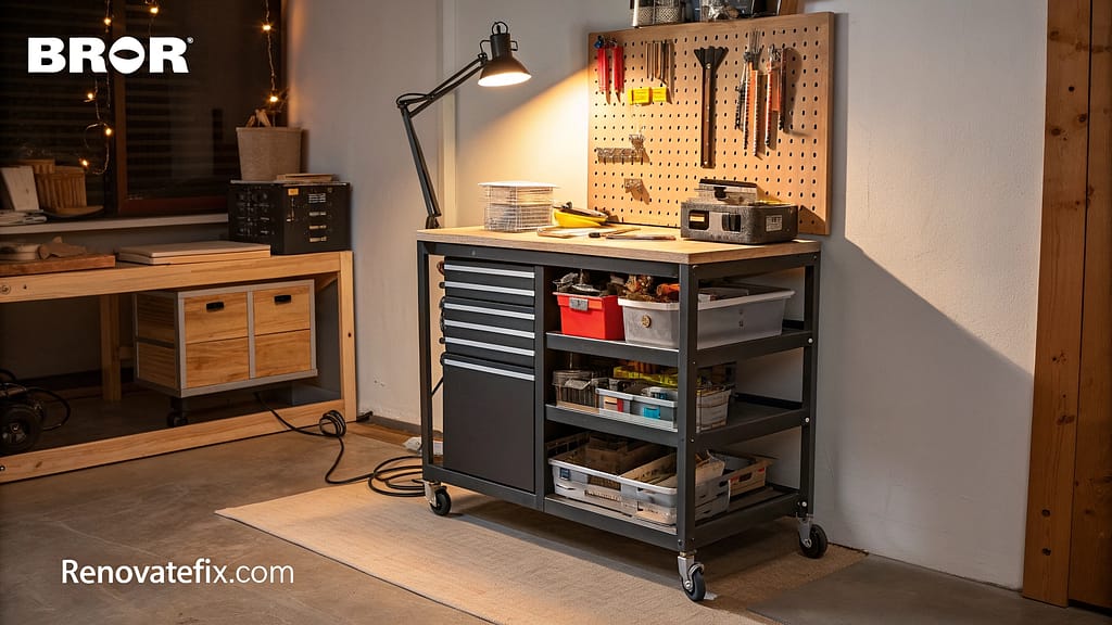 BROR utility cart modified into a standing-height work surface provides flexibility in your craft space.