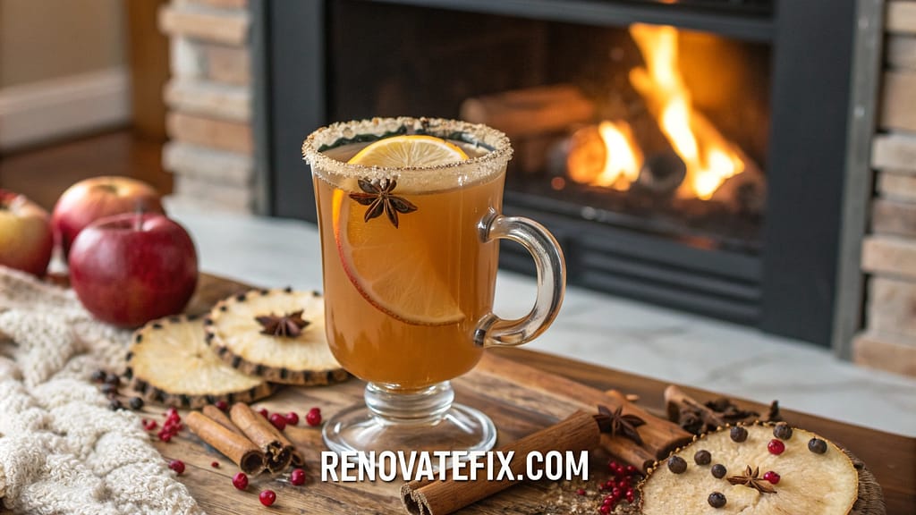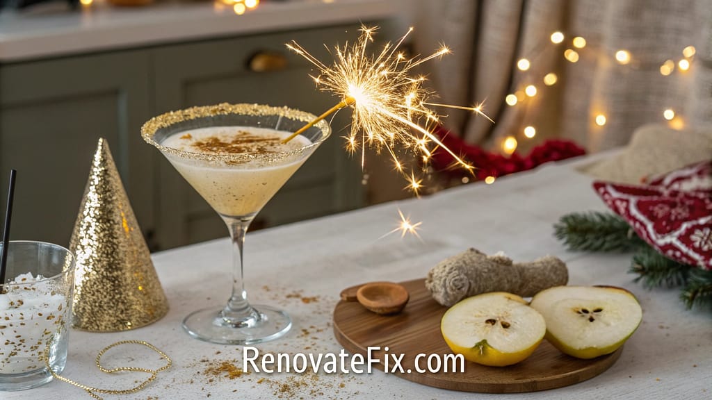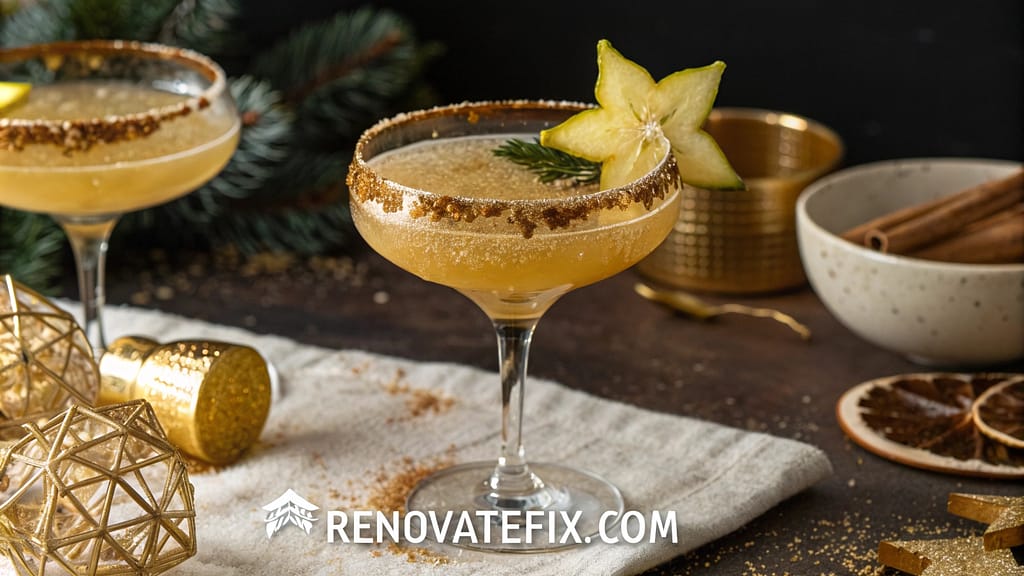 Cinnamon-sugar rim glistens beneath candlelight, offering warmth with celebratory fizz.