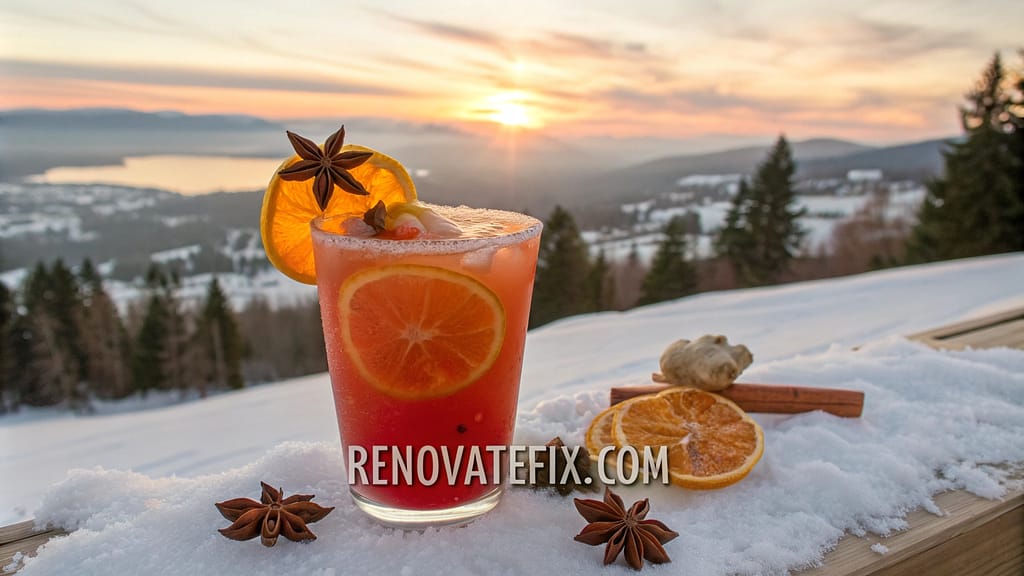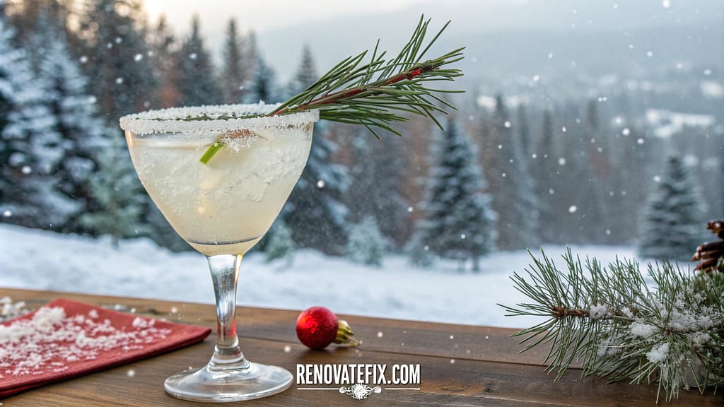 Sugar-frosted pine needles grace glass rims while citrus oils mist above like morning fog.
