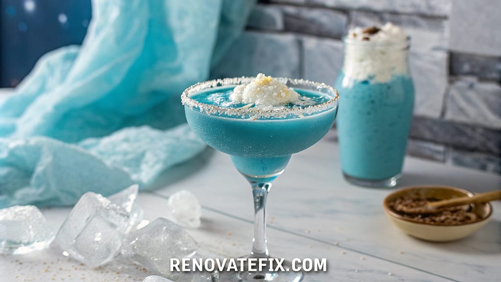 White rum blends with blue curacao and coconut cream, creating aurora-inspired magic.
