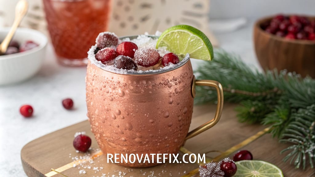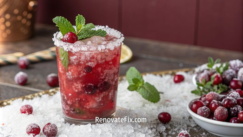 Sugared berries float like ornaments while copper mugs frost beautifully.