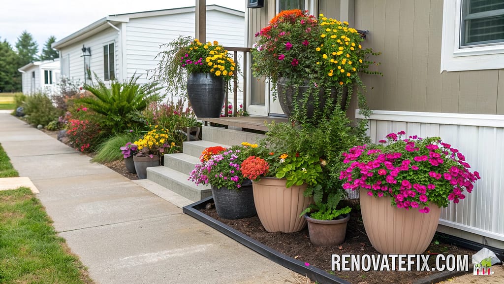 This strategic approach ensures your mobile home always presents fresh curb appeal while allowing experimentation with different color schemes or plant varieties as seasons progress.