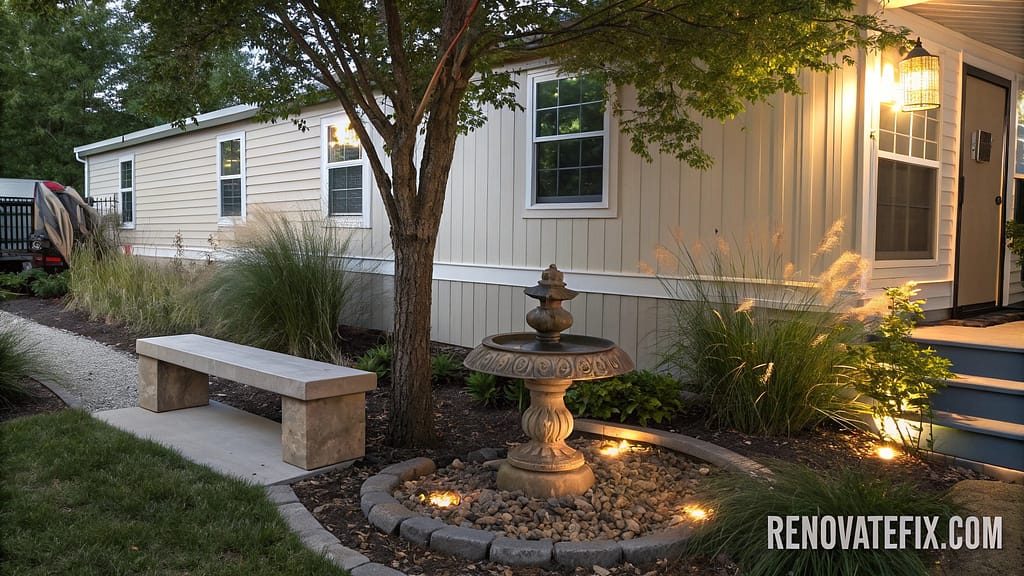 These movable landscape elements provide flexibility for adjusting your outdoor design seasonally or whenever maintenance needs arise around your mobile home.