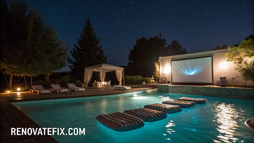 Create unforgettable entertainment experiences by positioning weatherproof projection surfaces near pool edges for evening film viewings.