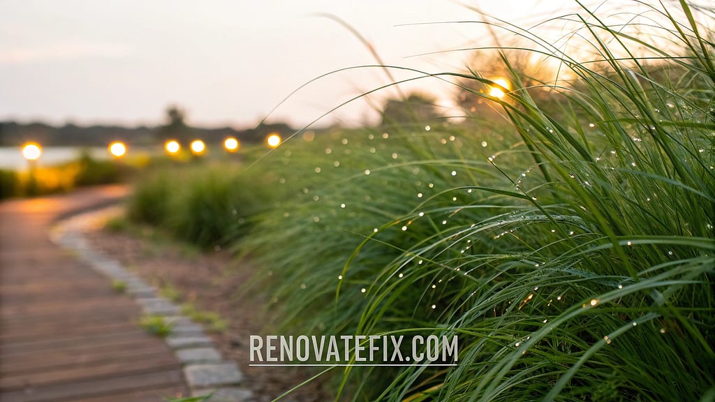 A strategic placement of tall, graceful citronella grass creates living barriers around sitting areas, releasing natural compounds that ward off flying insects while adding architectural interest to your landscape.