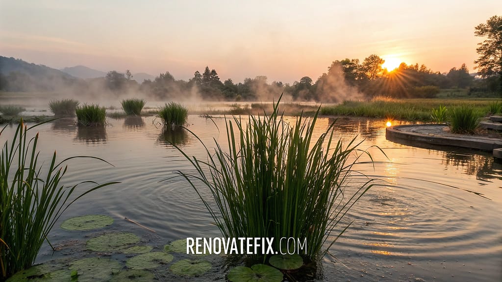 Floating lemongrass clusters in pond gardens or water features combine moving water elements with natural repellent properties.